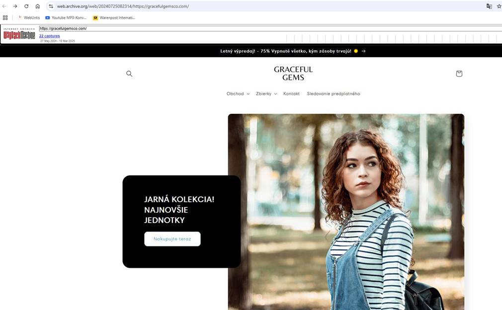 Ebenso am 12. August / The same on August, 12: https://web.archive.org/web/20240812071141/https://gracefulgemsco.com/